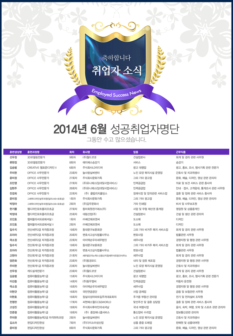 [성공취업] 2014년 6월 성공취업자 소식